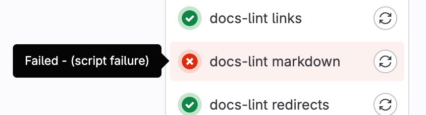 - From the pipeline graph, next to the job you want to retry, select Run again ({retry}).