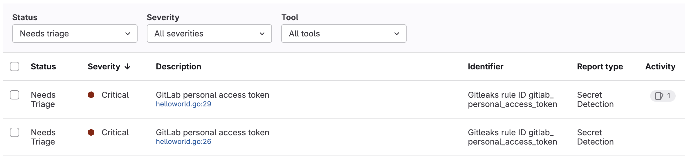 .gitlab-ci.ymlfile and have the report as an artifact in a job.For example, to reproduce an error caused by a SAST job: